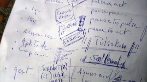 « Quelle est le rêve ? » me demanda t’il. « Qu’est-ce que tes clients vont venir chercher ? » … Nous en vinrent à échanger sur les techniques, les protocoles, les définitions de la cohérence cardiaque et de la sophrologie…bref ce que je souhaite transmettre, et comment je veux le faire… un brainstorm démarra ensuite… et tout y passa… idées, concepts, sonorités, images… et même une incursion dans les dictionnaires d’argot qui, au point où nous en étions, auraient pu être une bonne inspiration !